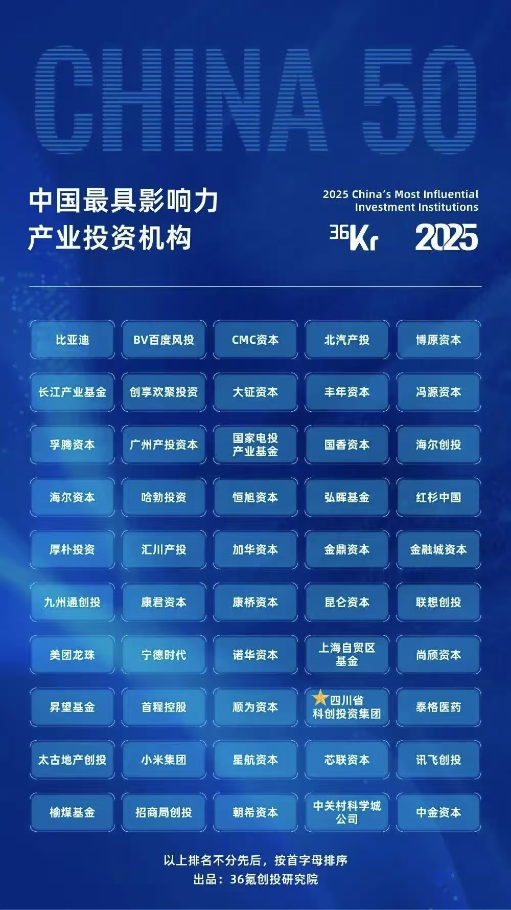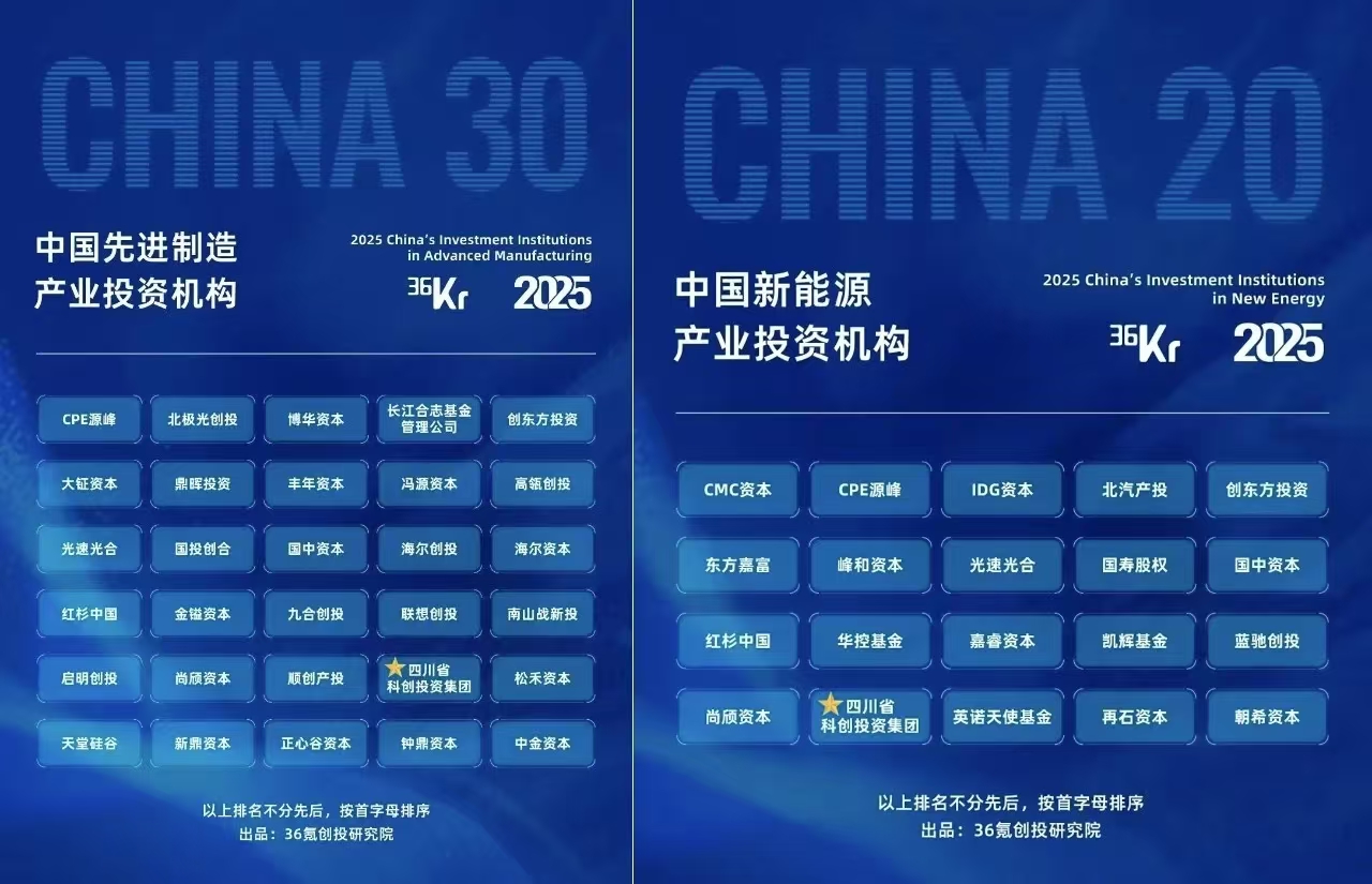 榮譽 | 四川省科創(chuàng)投資集團斬獲36氪“2025中國最具影響力產(chǎn)業(yè)投資機構(gòu)TOP50”及多項產(chǎn)業(yè)榜單